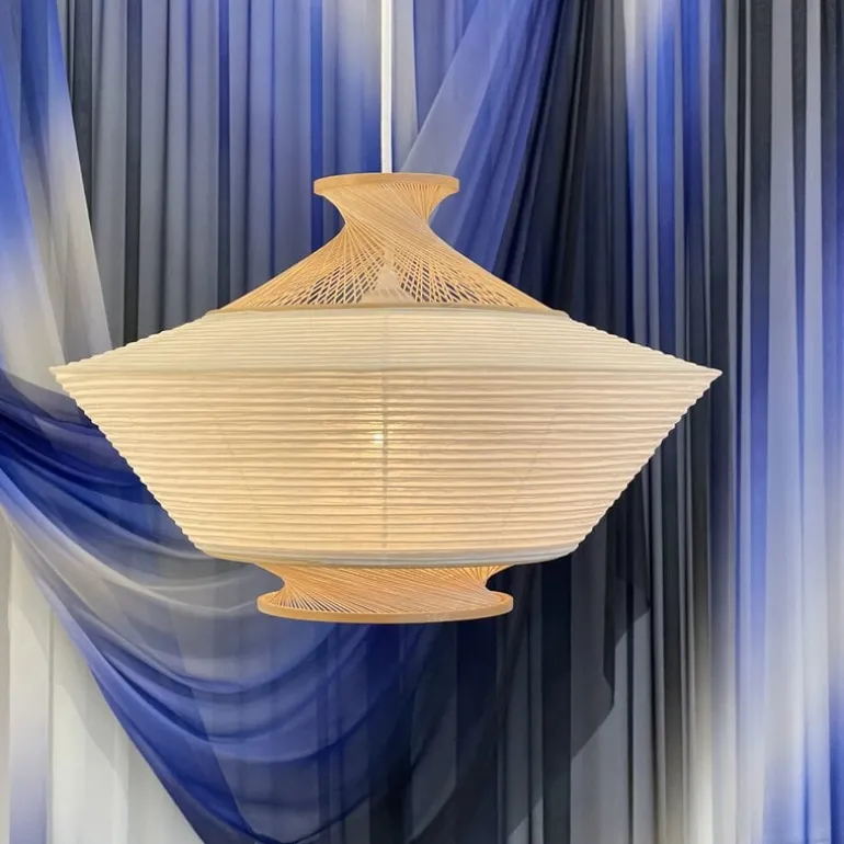Motarasu’s Ron pendant pays homage to the beauty of Japanese craftsmanship. The delicate lamp masterfully combines materials: traditional bamboo meets sturdy washi paper, creating a harmonious balance of both strength and warmth. The pendant’s versatile design allows for an easy update – simply flip the shade upside down to refresh the look.
