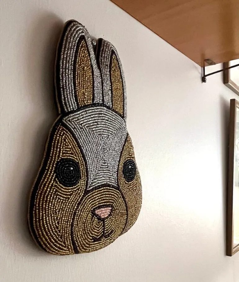 Bunny wall art by Mum’s brings joy, charm and a touch of playfulness to your home décor. Designed by Outi Puro, the adorable animal comes to life through expressive details made by intricately embroidered glass beads on fabric. The handcrafted artwork fits beautifully into the serene atmosphere of a bedroom or the lively vibe of a children’s room – no matter the space, the Bunny is sure to captivate at first sight!
