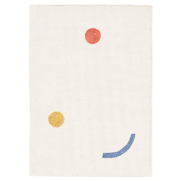 The Hymiö rug is handcrafted in India, with the pattern carefully embroidered by hand. Although the rug’s appearance and texture resemble those of a tightly-woven wool rug, it is actually made of a rather surprising material: recycled PET plastic bottles. Thanks to the ingenious material, the rug is very durable, easy to care for, and suitable also for outdoor use – but doesn’t really look like an outdoor rug. Therefore, it is just as at home indoors as it is on the balcony or patio!