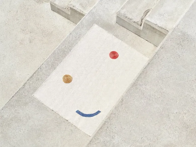The Hymiö rug, designed by Tomi Leppänen for MUM’s, is adorned with an abstract pattern based on typographical elements. Part of Leppänen’s Typewriter collection, the rug is inspired by Bauhaus and specifically the work of textile designer Anni Albers, who experimented in the 1930s with using her typewriter as a tool for making patterns. The minimalist pattern of Hymiö (Finnish for “smiley” or “emoticon”) is also created using the full stops and dashes of a typewriter.