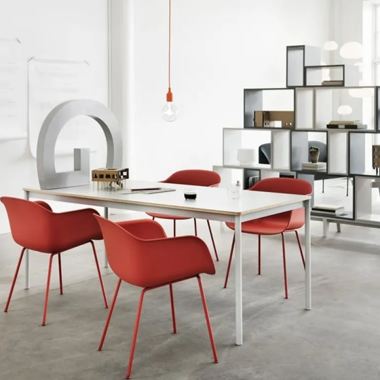 Muuto’s Base is a beautiful, minimalist table, created by the Finnish designer Mika Tolvanen. His aim was to design a distinctive table that is reduced to its bare minimum but at the same time feels inviting. The lightweight table features a sturdy aluminum frame, which is manufactured by extrusion, and the table top is available with a linoleum or laminate surface, either with ABS or plywood sides. With its clean and simple design Base makes a versatile piece of furniture, suitable for both homes and offices.