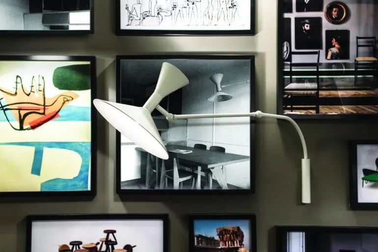 Nemo Lighting’s Lampe de Marseille Mini is a smaller version of the sculptural wall light designed by the world-famous architect Le Corbusier for the Unité d’Habitation in Marseille at the turn of the 1950s. The position of the light is easy to adjust since the arm features two joints and turns from side to side. The striking shade consists of two aluminum cones that offer direct and indirect light. Lampe de Marseille is a true statement piece that has and will stand the test of time.