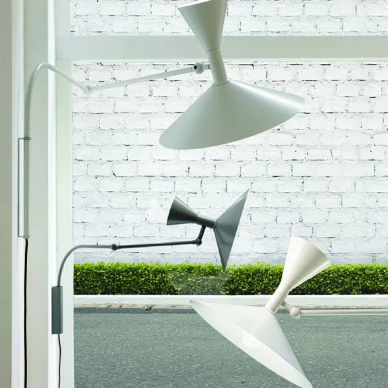 Nemo Lighting’s Lampe de Marseille is a sculptural wall light designed by the world-famous architect Le Corbusier for the Unité d’Habitation in Marseille at the turn of the 1950s. The position of the light is easy to adjust since the arm features two joints and turns from side to side. The striking shade consists of two aluminum cones that offer direct and indirect light. Lampe de Marseille is a true statement piece that has and will stand the test of time.