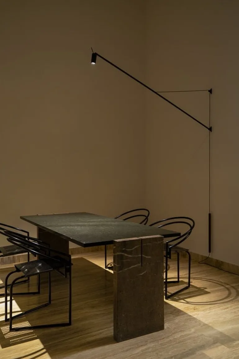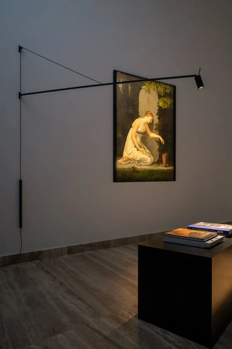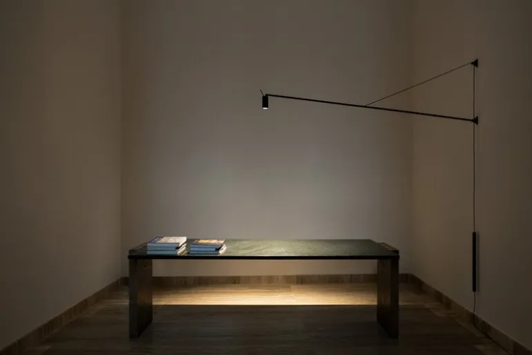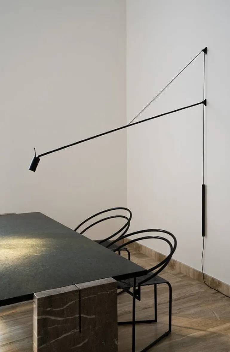 The long arm of the Swan wall lamp looks equally great above a desk or dining table, and its sleek, sculptural silhouette is sure to enliven the decor of any living room or lobby. The total length of the luminaire is 72.44 x 0 in (184 x cm. cm).