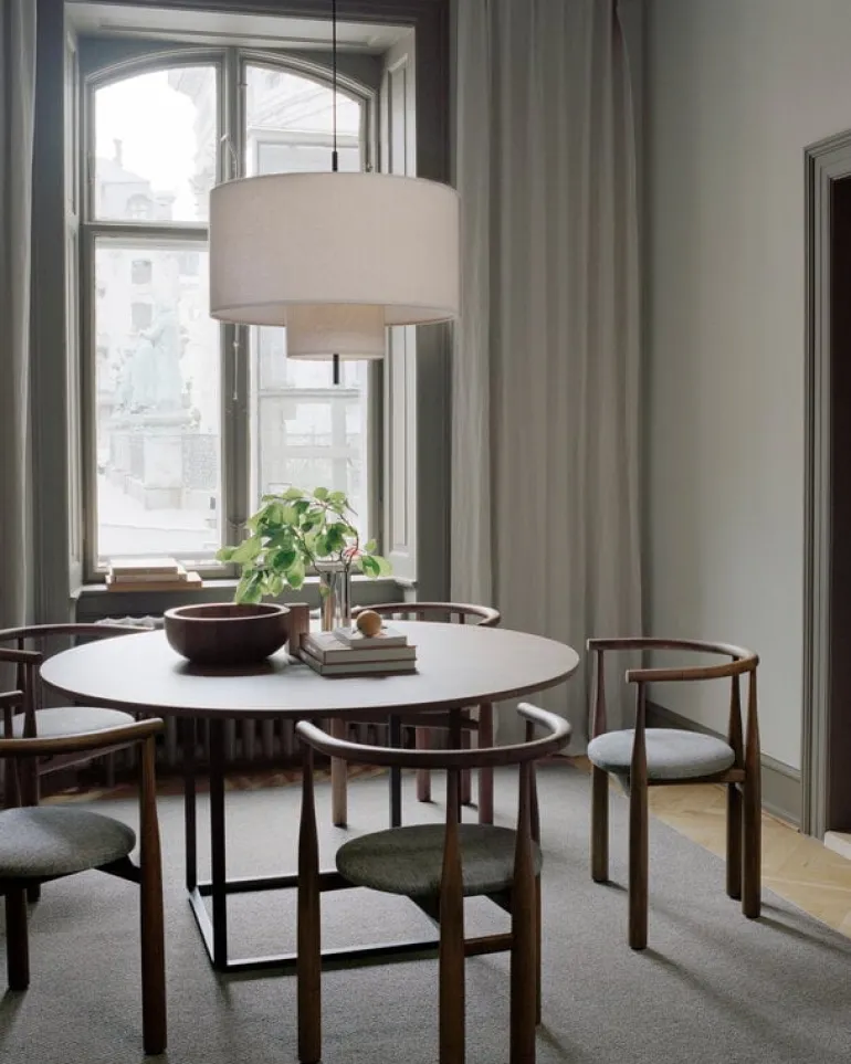 New Works’ Bukowski chair is stripped down of all the unnecessary: there is nothing extra about the simplified chair and it doesn’t seem to need anything more. Borrowing its name from designer Steven Bukowski, the minimalist chair consists of slender wooden legs with a lightweight upholstered seat in the middle. The backrest of the chair is shaped ergonomically and comfortable to support the back of the sitter. The charming combination of walnut and textile makes the Bukowski chair suitable for the dining table in the kitchen, in the home office or as an extra seat in the living room. The beautiful chair also finds its place in public spaces such as restaurants, hotel lobbies, or meeting rooms.