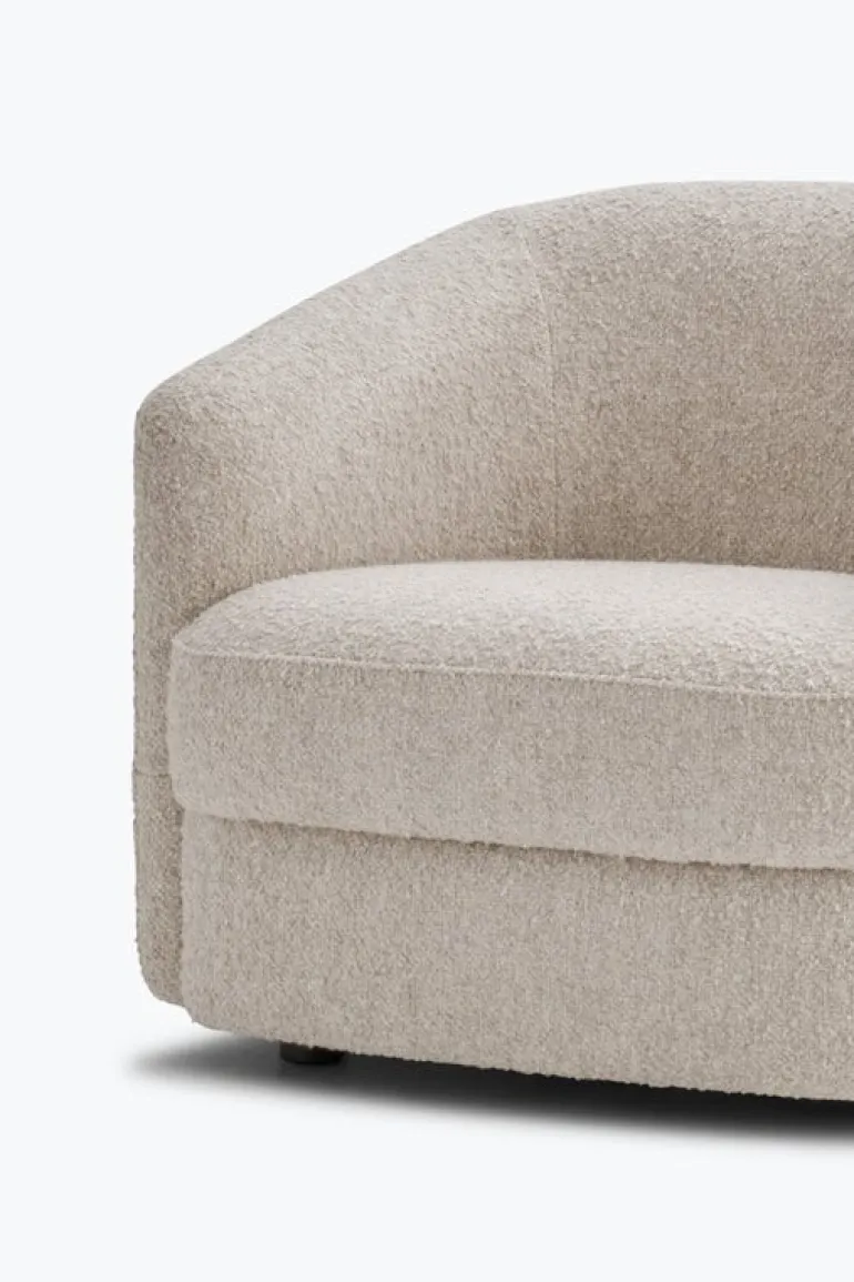 Covent, designed by Arde Design Studio for New Works, is a contemporary, upholstered lounge chair that works equally well in a reading nook and as a comfy pair of a sofa. The soft top of the armchair extends all the way to the ground and the curvy appearance exudes inviting warmth. Available in several different high-quality upholstery fabrics, the Covent chair showcases expert craftsmanship and considered detailing.