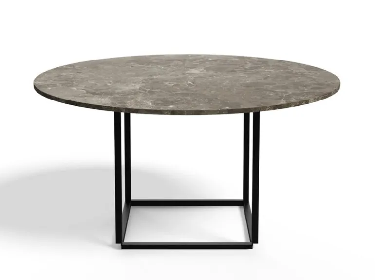 New Works’ Florence dining table consists of a cubic steel frame supporting a round table top in gray marble. The slender and unique Florence makes an excellent dining table in various different interiors from households to cafés and restaurants.