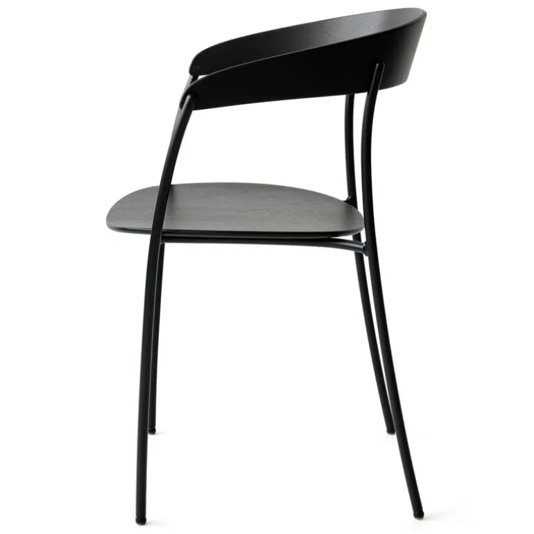 New Works’ Missing chair, designed by Regular Company, is a new elegant take on the classic stackable café chair, characterized by soft curves and thin lines. Comprising only a thin steel frame and two pieces of timber forming the seat and back, the refined chair is stripped of anything unnecessary – almost like a sketch that has suddenly become three-dimensional. Simple yet compelling, the Missing chair has a subdued character that is still ineffably distinctive.