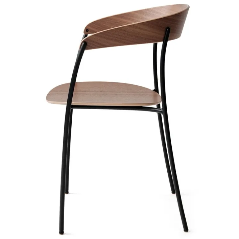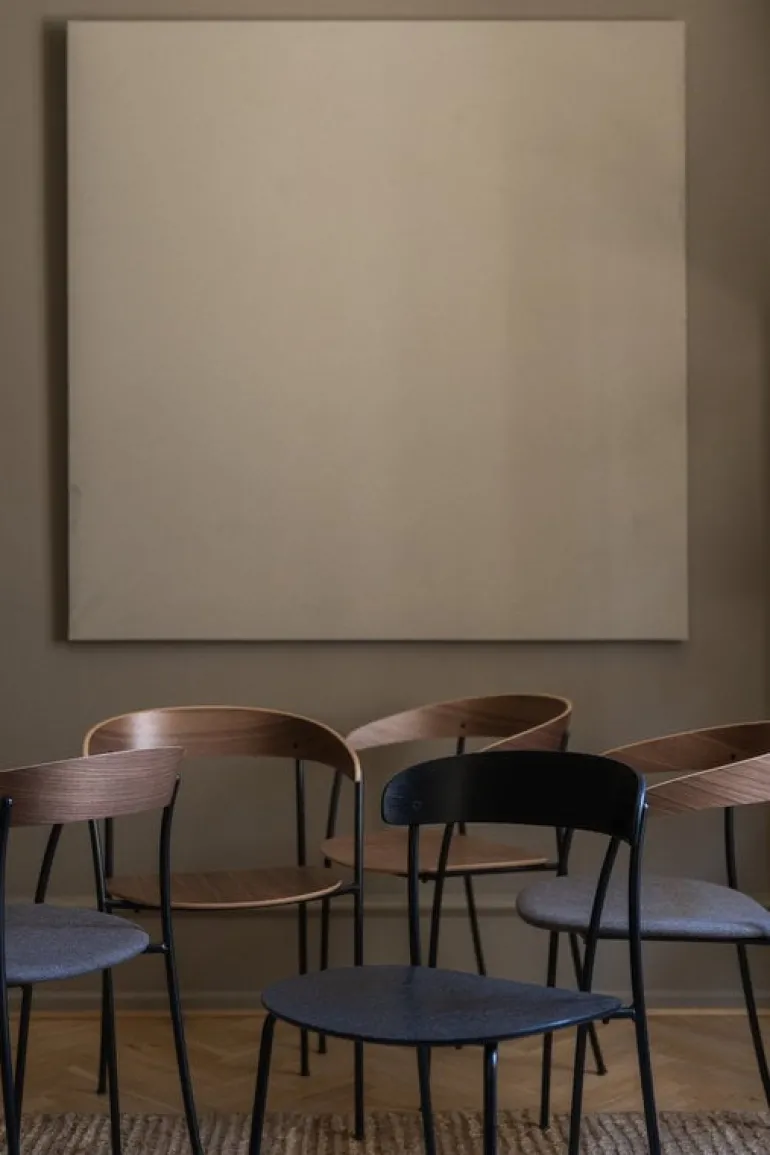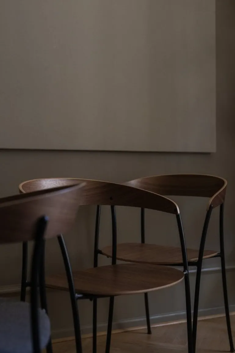 New Works’ Missing chair, designed by Regular Company, is a new elegant take on the classic stackable café chair, characterized by soft curves and thin lines. Comprising only a thin steel frame and two pieces of timber forming the seat and back, the refined chair is stripped of anything unnecessary – almost like a sketch that has suddenly become three-dimensional. Simple yet compelling, the Missing chair has a subdued character that is still ineffably distinctive.