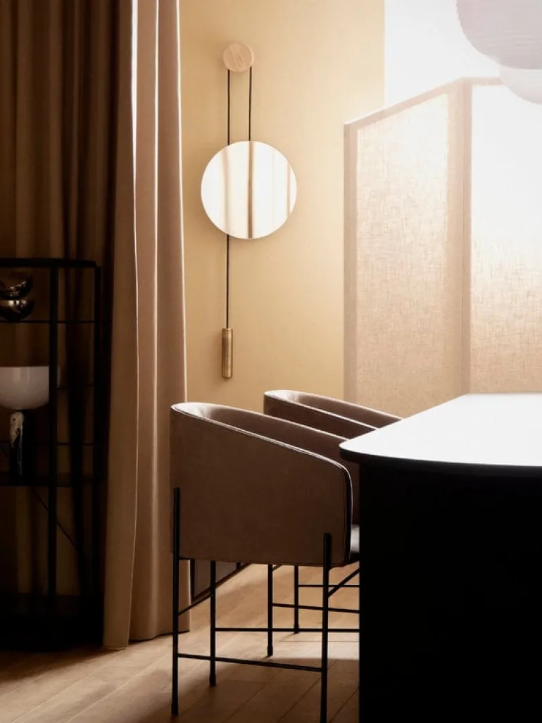 The Rise & Shine mirror by New Works challenges our notion of what a wall mirror should look like. Hanging from an oak knob, the mirror can be adjusted at a height that best fits your needs with the help of a brass weight – or, if you’d prefer a more creative approach, artistically balanced to create a fascinating sculpture on your wall.