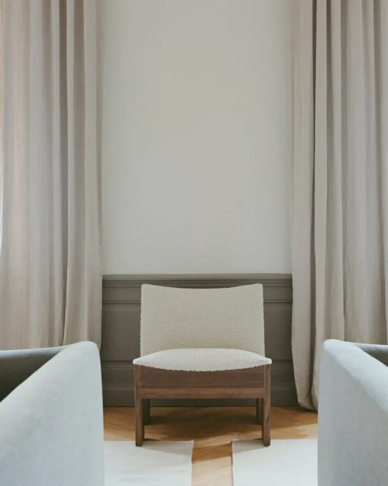 New Works’ Tenon is a compact yet visually striking lounge chair, blending soft and hard surfaces with a mix of angular and smooth shapes. Made from solid oak, the Tenon lounge chair gets its name from the mortise and tenon joints of its frame. The gracefully curved wooden parts are finished with veneer, while the fabric-upholstered seat is cushioned with plush foam for added comfort. With its elegant, slender design, the Tenon lounge chair works beautifully as a companion to a sofa set or as a cozy seat in a reading nook, and its attractive back makes it a stunning choice for placement in the middle of a room.