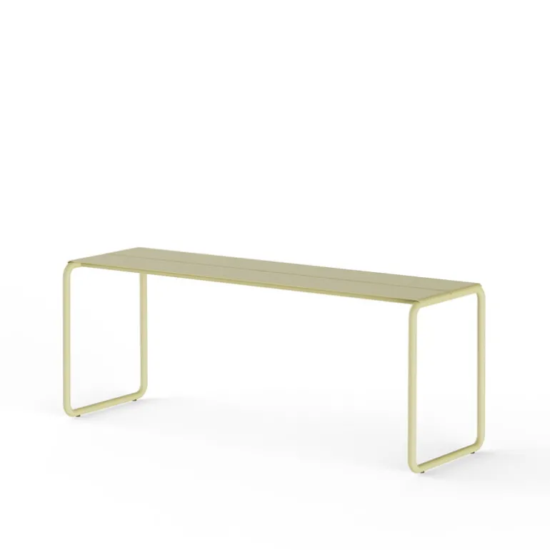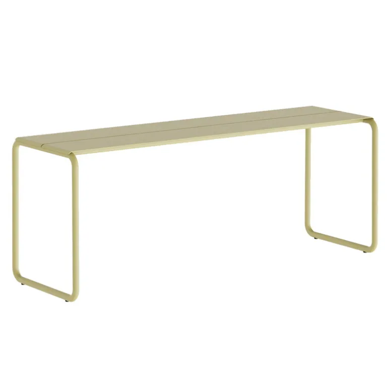 Nine’s Sine bench is an elegant stainless steel garden bench that stands out with its tubular, rectangular frame, giving it a sleek appearance. The seat of the bench is crafted from thin metal sheets with gaps that allow for quick drying after a downpour.