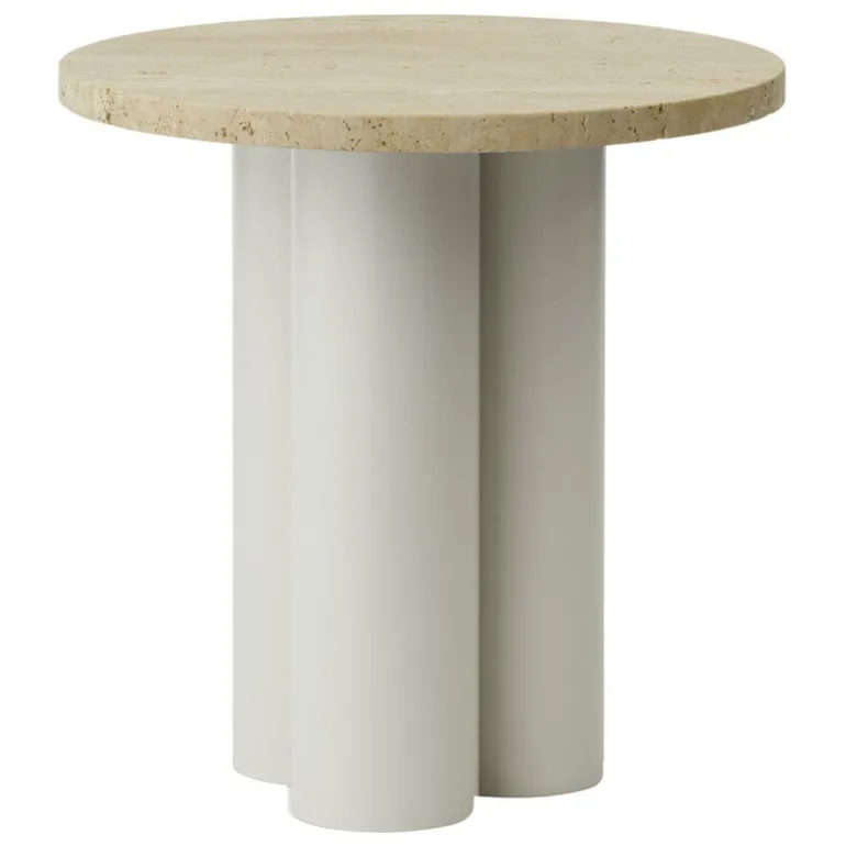 Normann Copenhagen’s Dit table combines the timeless elegance of marble with a playful, contemporary design language. The table’s distinctive base is formed by three colorful columns that support a round stone top, which features unique natural patterns typical of the material.