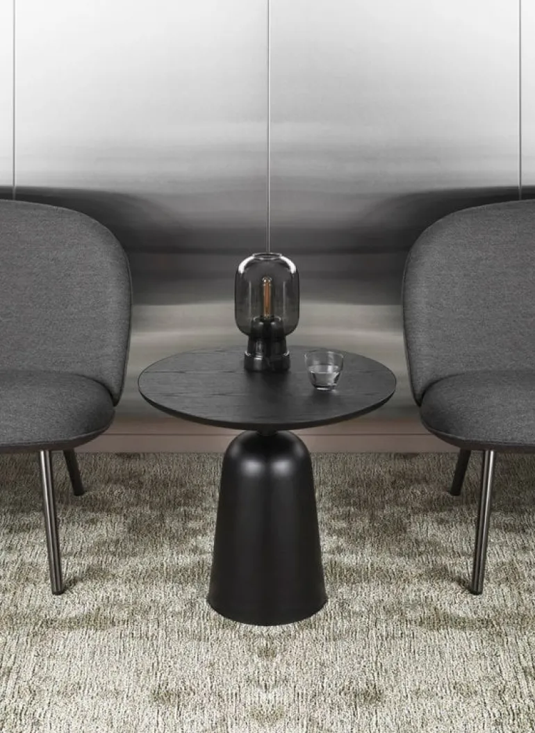 Normann Copenhagen’s Turn is an attractive, multifunctional side table designed by Simon Legald. The name Turn comes from the swivel structure of the table: by turning the tabletop, you can adjust the height of the table between 16.34 in (41,5 cm) and 26.18 x 0 in (66,5 x cm. cm). The lower heights are great when using Turn as a coffee table or bedside table, and when turned higher, it makes an excellent side table in any room. The bell-shaped base is made of steel and the tabletop is ash veneer, and the monochrome coating gives the table a fresh, uniform look.