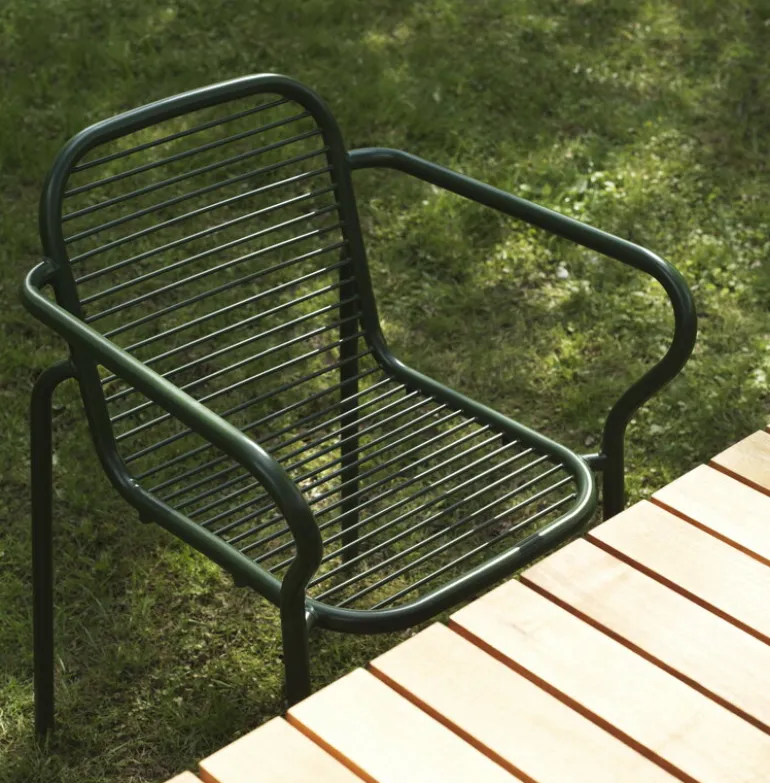 Designed by Simon Legald, the Vig collection offers a wide range of outdoor furniture from patio chairs and benches to garden tables, making it easy to turn your day-to-day garden into an inviting and beautiful green oasis. The Vig armchair is built to last because of its stylish appearance and its durable material: the double powder-coated steel surface is highly resistant to varying weather conditions, ensuring that the chair can withstand scorching sunshine as well as pouring summer rain.