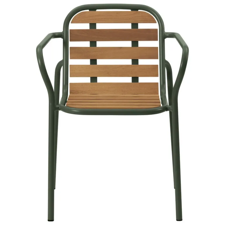Designed by Simon Legald, the Vig collection offers a wide range of outdoor furniture from patio chairs and benches to garden tables, making it easy to turn your day-to-day garden into an inviting and beautiful green oasis. The Vig armchair is built to last because of its stylish appearance and its durable material: the double powder-coated steel surface is highly resistant to varying weather conditions, ensuring that the chair can withstand scorching sunshine as well as pouring summer rain. In this Vig armchair, the steel surface is combined with charming Robinia wood, which provides a beautiful, natural contrast to the metal frame.