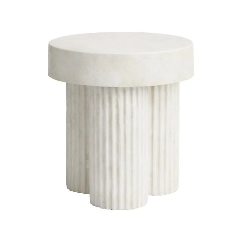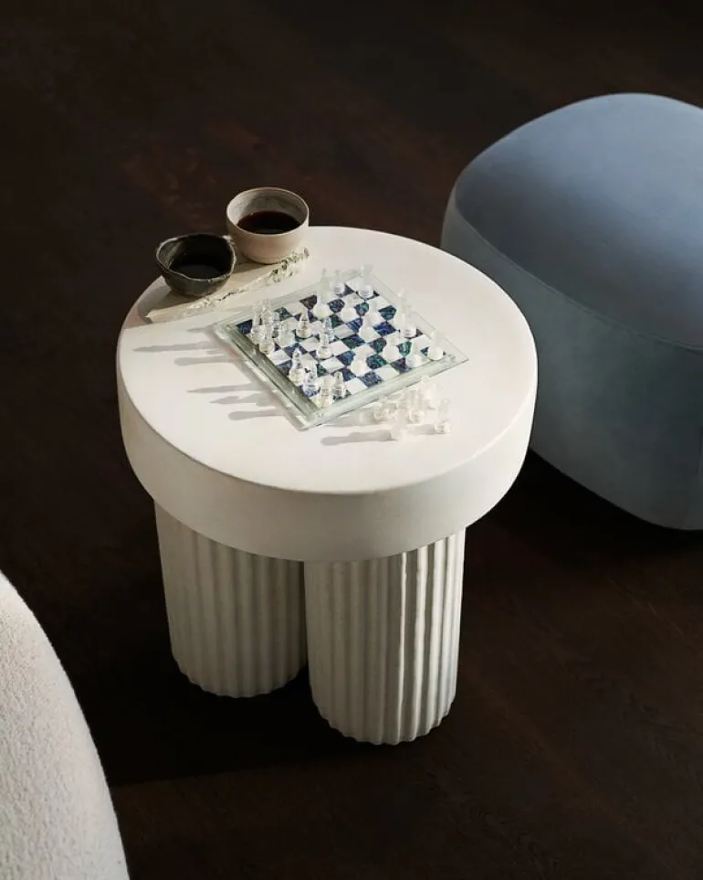 NORR11’s Gear side table is a sculptural concrete table with a design inspired by the brutalist architecture of the mid-20th century. The Gear side table features a sturdy, round table top supported by three cylindrical legs, all molded in one single piece. Concrete gives the table a lively, tactile texture, which is emphasized by the fluted details of the legs.