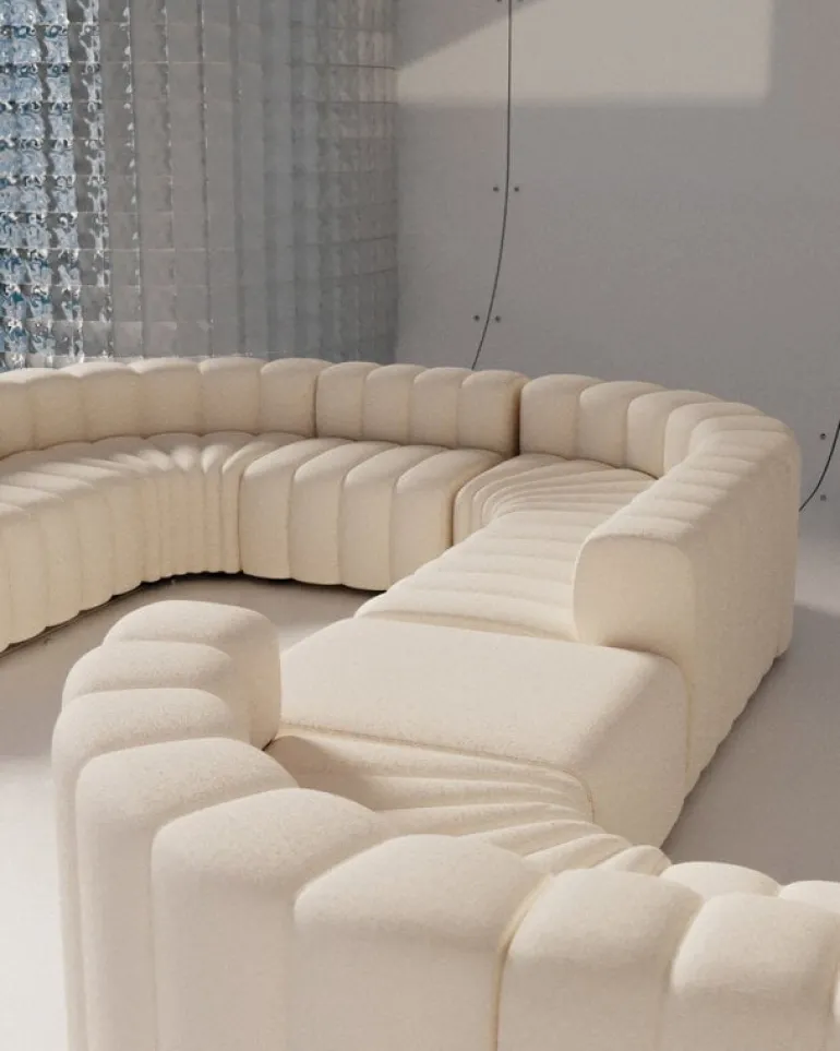 The Studio 2 modular sofa from Norr11 sweeps you off your feet with a uniquely sleek and sumptuous look, carrying groovy references to the unforgettable design era of the 1970s. However, you won’t be in a hurry to get back on your pins, as the plush sofa is not only visually pleasing but it’s also a treat to lounge on. A soft and supple bouclé upholstery completes the mood, adding a tactile touch to the space.