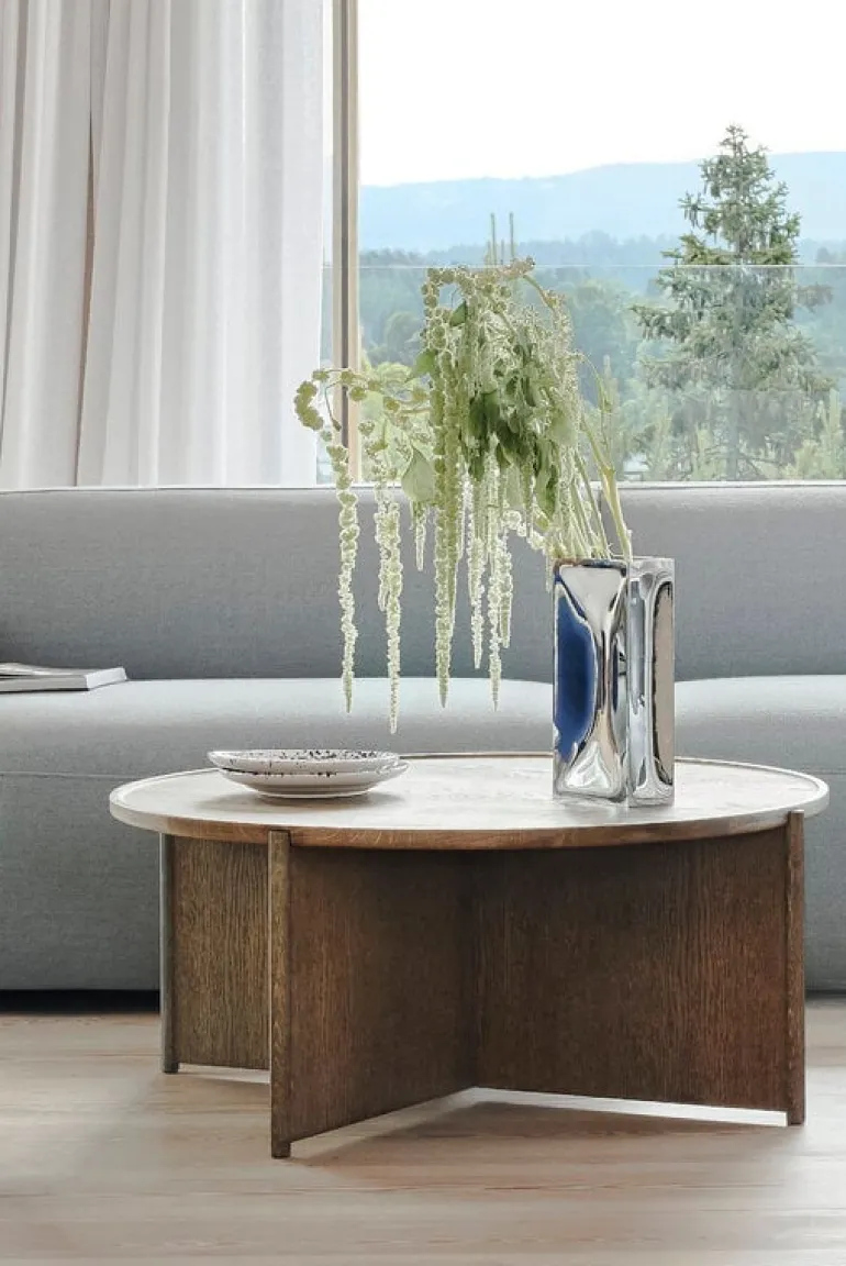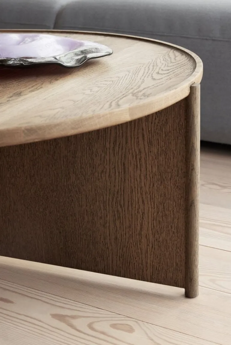 Northern’s Cling coffee table introduces a sleek, modern touch to any space. Designed by Anton Björsing, the table combines a round tabletop with an eye-catching geometric leg structure, giving the lightweight table surprising sturdiness without making the overall look too heavy. The color of the smoked oak with its distinct grain pattern ensures this balance. The Cling coffee table is a timelessly beautiful choice for both home living rooms and public spaces.