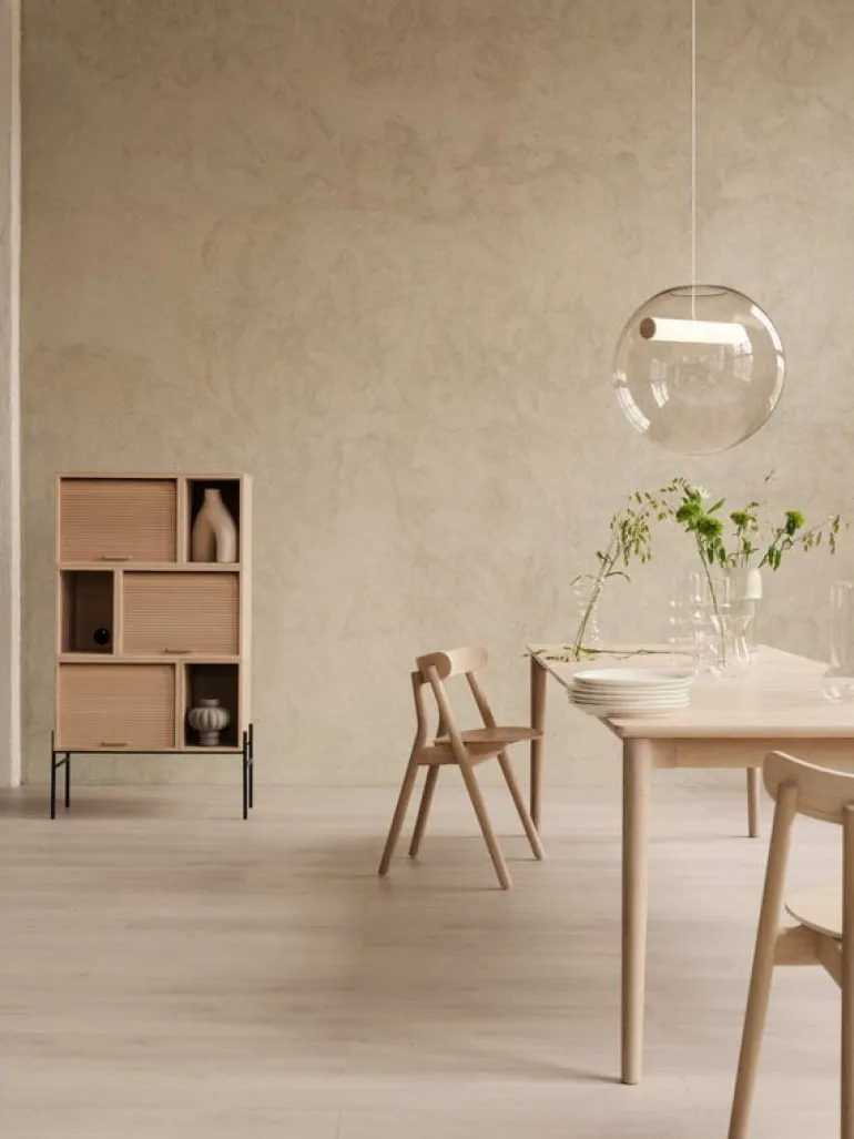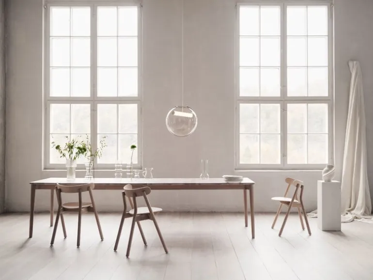 Northern’s Expand dining table is designed for dining together with family and friends. The natural wood color, rounded edges and narrow legs of the tabletop give the table its Nordic, timeless elegance. Designer Sami Kallio has added a slight angle to the table legs, which makes the table feel light even when it is extended to its full length.