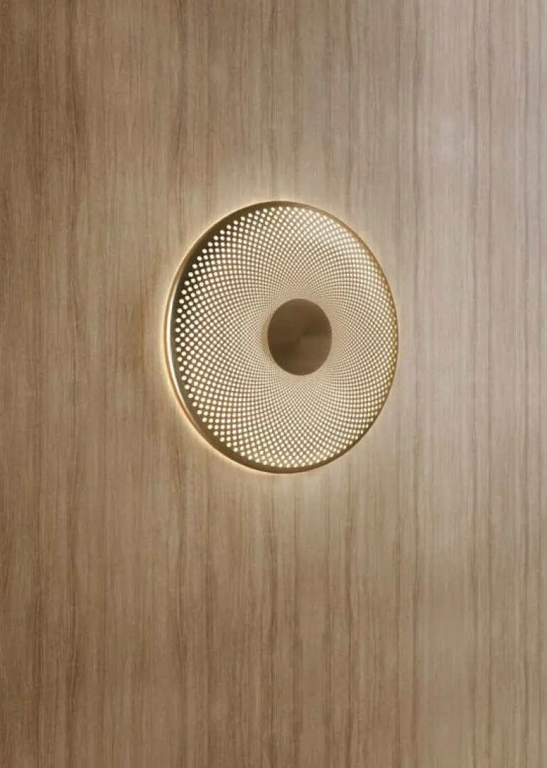 Northern’s Glint wall lamp charms with its soft, intimate light. The delicate luminaire consists of a circular metal shade with a perforated surface that filters a play of lights and shadows across the wall. The Glint light is suitable for many rooms: the slim and elegant luminaire is a delight on its own on a bedroom wall or in a row of lamps in a hallway or staircase.
