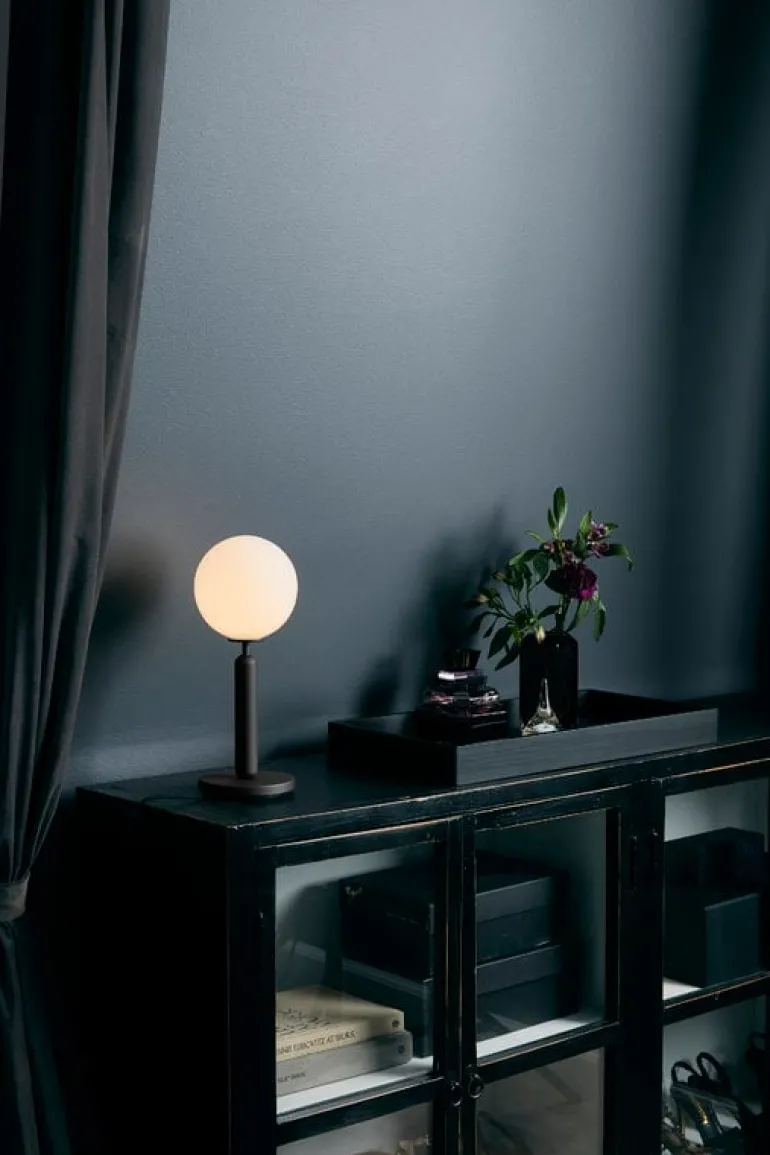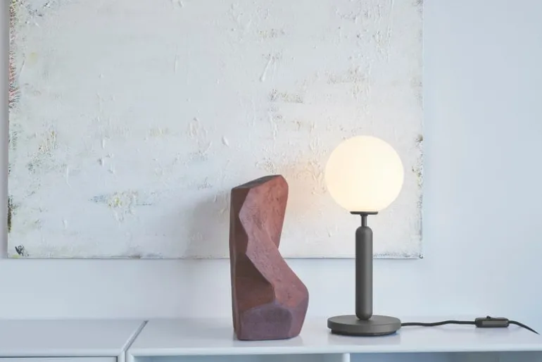 The Miira table lamp by the Danish brand Nuura catches the eye with a beautifully shaped opal glass dome that casts an atmospheric light, with the elegant metal base adding a considered contrast to the design.