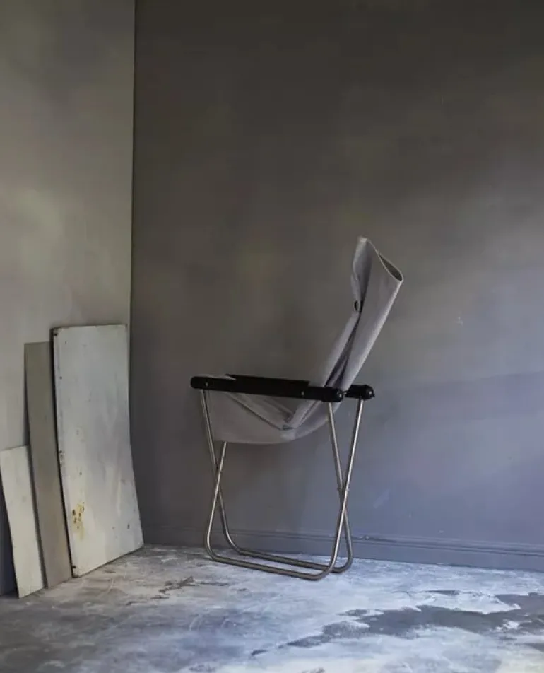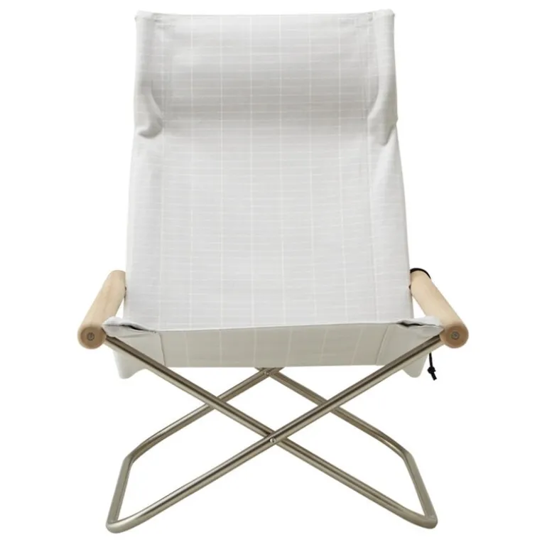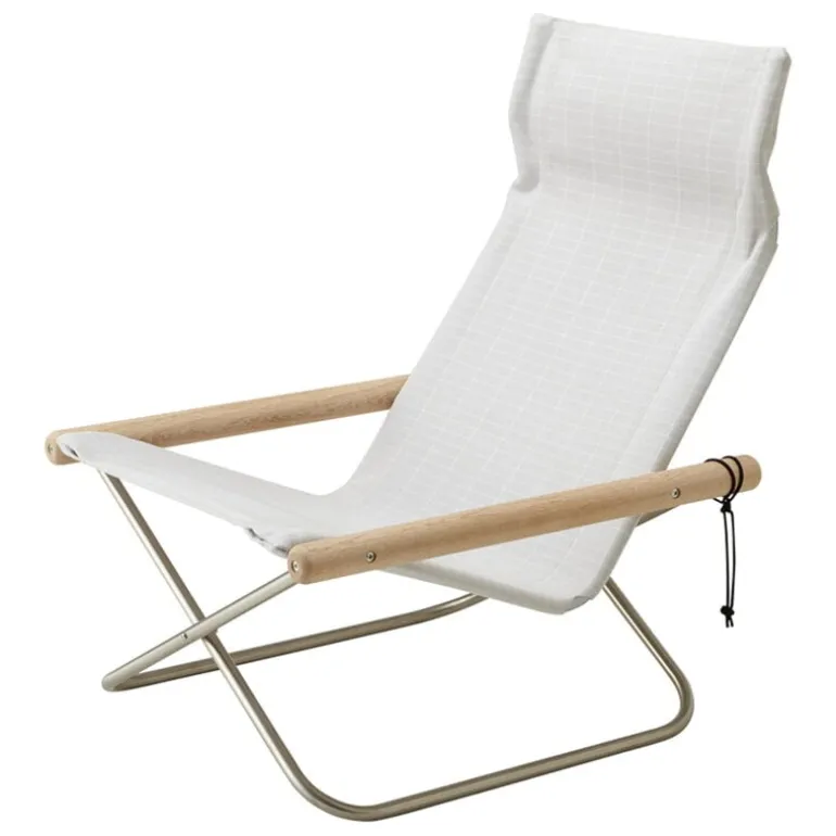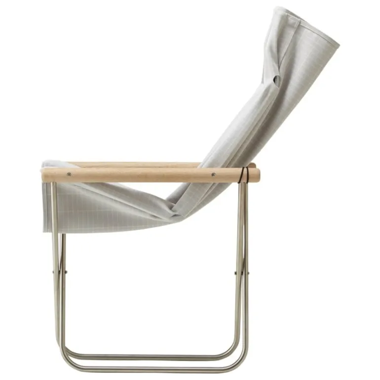 The Nychair X Shikiri lounge chair is a Japanese design classic that combines a foldable metal frame, a cotton fabric seat and wooden armrests, resulting in an effortlessly light and airy esthetic. Named and inspired by Japanese partitions and folding screens, the Nychair X Shikiri lounge chair is adorned with a geometric pattern by Rika Kawato. This minimalist lounge chair features a low frame that allows for a relaxed lounging position and a high, curving backrest that provides support to the neck. The durable sailcloth molds to the contours of the sitter, and if needed, the entire seat fabric can be cleaned or replaced. With its sleek yet incredibly comfortable design, the Nychair X Shikiri lounge chair is equally suited for watching TV and unwinding in the living room or taking a well-deserved break in the office, and its foldable structure enables effortless storage and transportation.