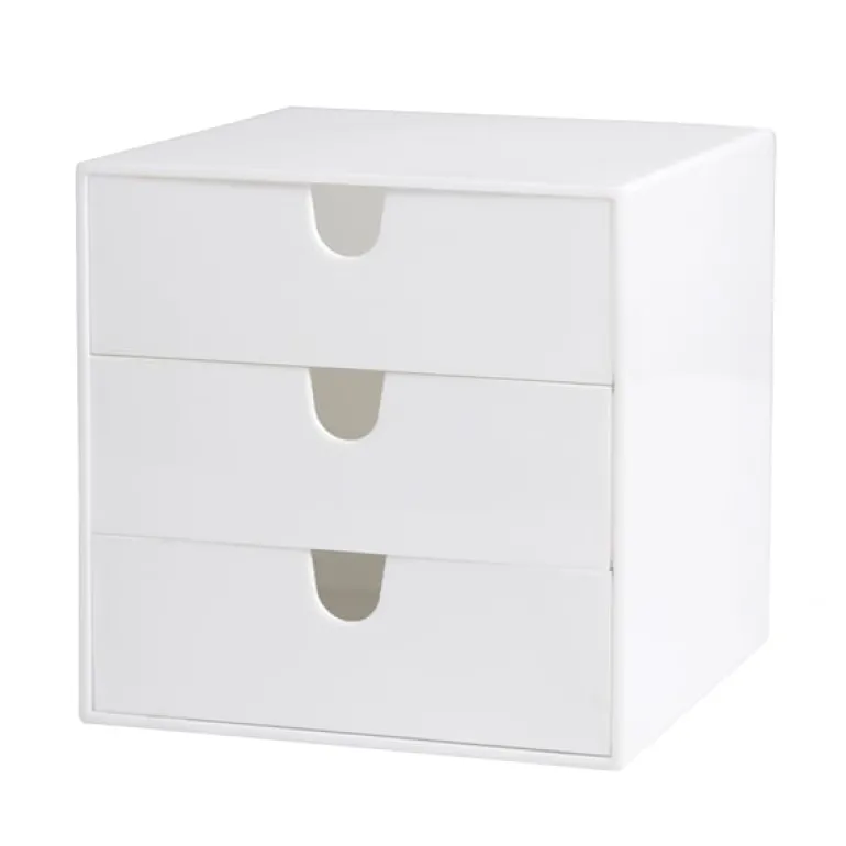 The Palaset 3-drawer box is a multi-purpose storage drawer designed by Ristomatti Ratia and introduced already in 1972. Made of robust plastic, the 3-drawer box can store small items such as pens, paper clips, make-up, jewels, medicines, etc. The versatile and compact storage box is ideal both at home and in the office. Palaset products are manufactured in Finland.