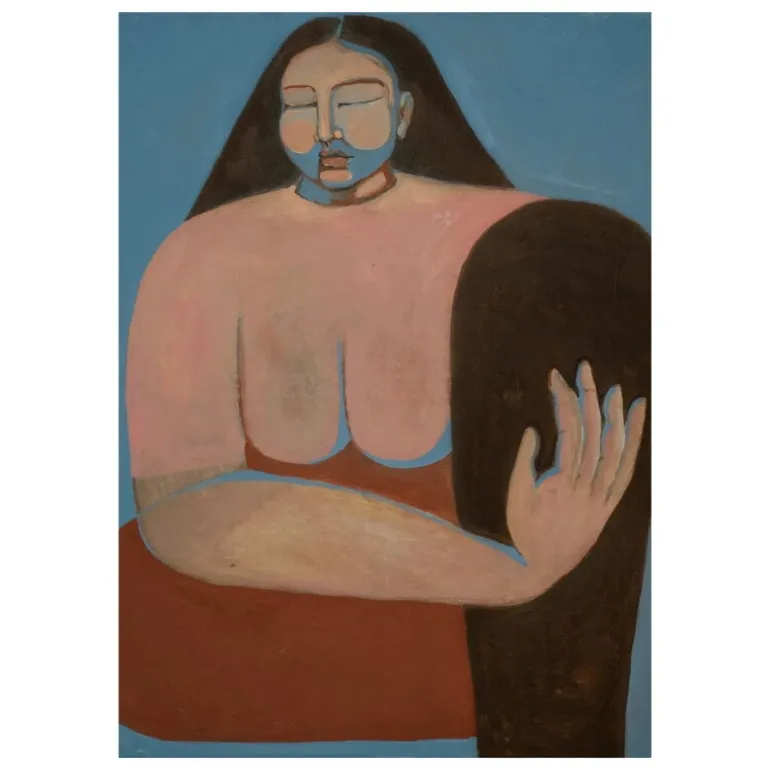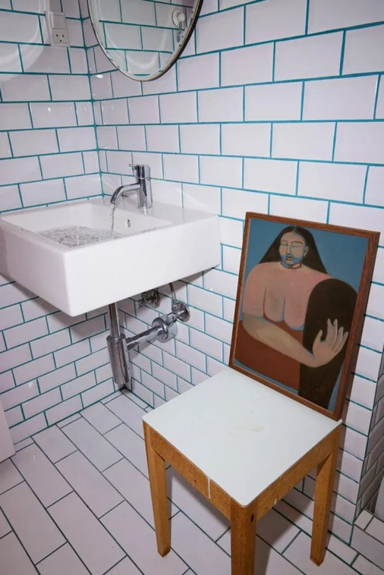 The Namaste poster by Paper Collective greets anyone entering the room with its red color palette and tranquil atmosphere – fittingly, as its title, Namaste, refers to the Indian gesture of warmly welcoming both friends and strangers alike. Designed by Josefin Tolstoy, the poster depicts a figurative female figure whose serene presence extends a sense of calm to the viewer.
