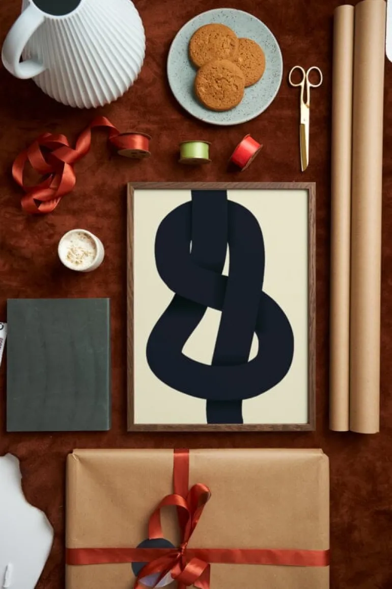 Paper Collective’s The Knot poster features a dark blue line flowing across the poster’s light beige background. Recalling a figure 8 knot, the graphic poster is designed by Nina Bruun.