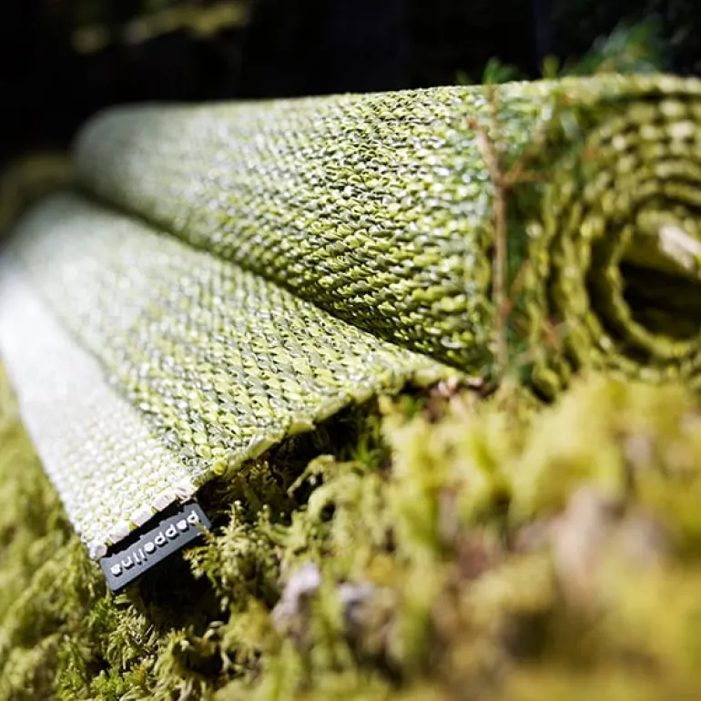 The Mono plastic rugs from Pappelina are woven on a traditional loom in Dalarna, Sweden. Made of phthalate-free PVC ribbon, the rugs are durable and easy to care for, and their stylish two-tone colors suit various decors. Due to its narrow form, the rug can easily be put to use as a stunning hallway runner, kitchen area rug or outdoor rug. The Mono rugs feature double-folded ends and a sewn rubber label.