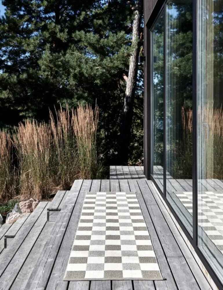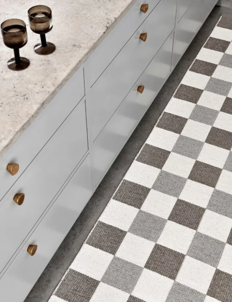 Pappelina’s Pix rug features a classic checkered pattern woven in three different colors. The double-folded edges are hemmed with a strong seam, and one corner has a sewn-on rubber label with a Pappelina logo. The Pix rug can be washed by hand or in a washing machine.