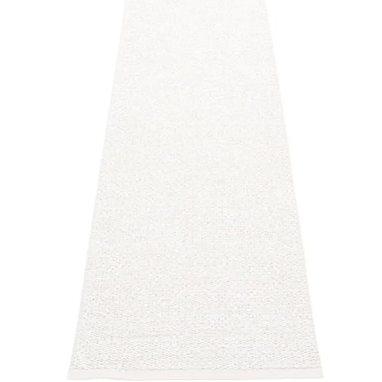The Svea plastic rugs from Pappelina are woven on a traditional loom in Dalarna, Sweden. Made of phthalate-free PVC ribbon, the rugs are durable and easy to care for, and their two-colored metallic shades are perfect for modern interiors. The Svea rug can easily be put to use as a hallway rug, kitchen area rug or outdoor rug. The Svea rugs come with an embossed logo on both ends.