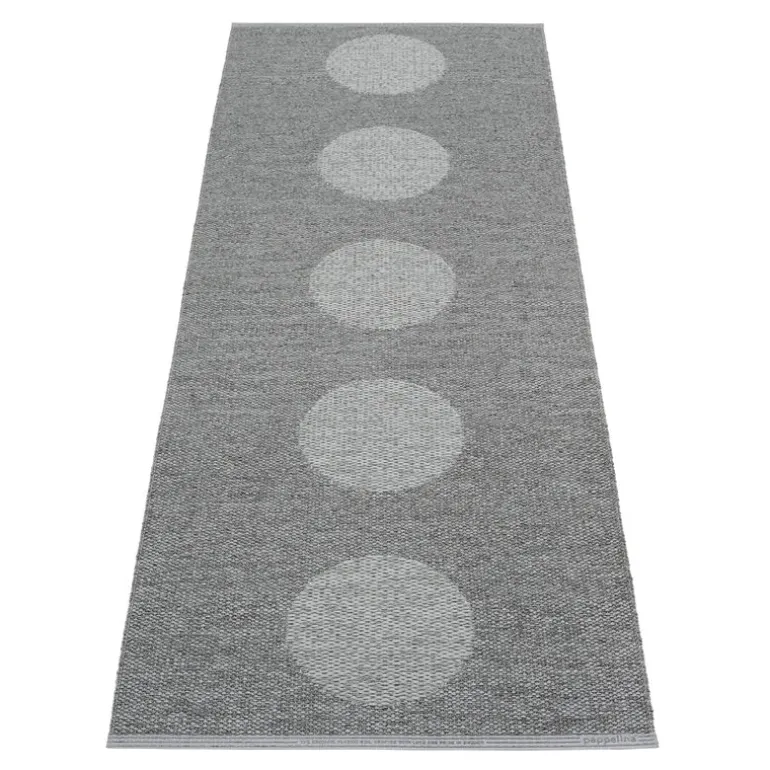 Pappelina’s Vera 2.0 rug is patterned by a row of large dots, adding a simple yet bold flair and a gentle metallic sheen to any decor. A two-sided design equals double the fun: you can flip the carpet over when you feel like it’s time for a new color. The rug’s edges are reinforced and welded for extra durability, and you can wash the rug by hand or in a washing machine.