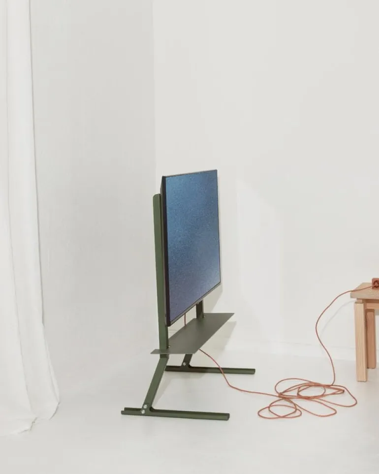 Pedestal’s Bendy Tall TV stand elevates your TV-watching experience with a touch of style and a dash of whimsy. The TV stand is not only aesthetical but combines elegance with functionality: the reclined posture of the Bendy Tall stand guarantees an ideal viewing height for those lounging on the sofa. Made from powder-coated steel, the minimalist TV stand is finished with a dark matte surface that perfectly complements modern Scandinavian interiors.