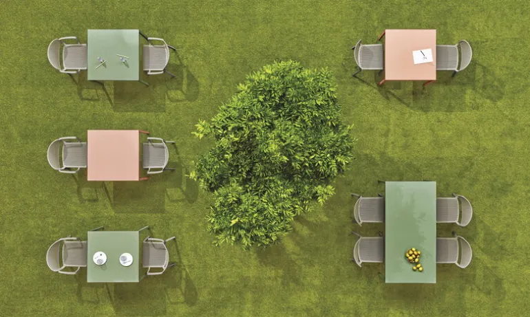 Pedrali’s Dome 260 chair will impress with its detailed appearance. The chair’s beautiful curves and the joints between the backrest and legs look as if they were carved from wood, but the material is surprisingly plastic. The choice of material makes the Dome 260 the perfect outdoor chair: it is weather-resistant, light to move and easy to clean at the same time. The garden chairs can be stacked on top of each other if necessary, making it easy to store the chairs at the end of the terrace season.