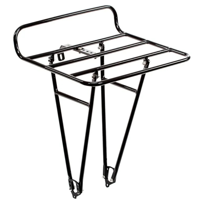 Pelago Bicycles’ Commuter Rear Rack is a sturdy and stylish bike rack equally well-suited for urban riding, commuting as well as bike touring. Made from lightweight aluminum, this classic porteur-style front rack has a large, wide platform where bags, sports equipment and takeaway food can conveniently sit within your sight while cycling. On both sides are horizontal mounting rails for front panniers. This design allows for a lower center of gravity, ensuring stability even when carrying heavy loads on the panniers, while still leaving ample space on the top platform.