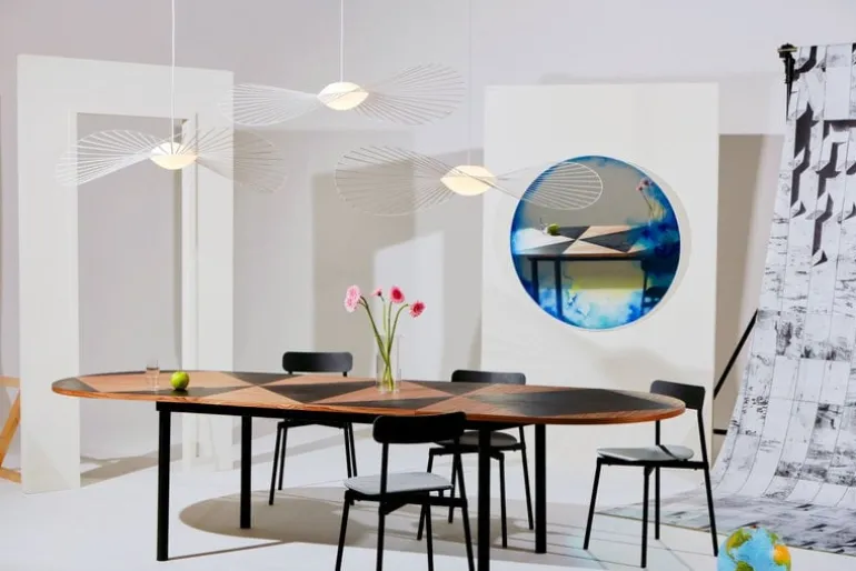 The Vertigo Nova pendant by Petite Friture is a softer, even more innovative version of Constance Guisset’s sculptural Vertigo luminaire. The difference between the two striking pieces lies in Vertigo Nova’s built-in LED technology that allows the light to be emitted softly through the sand-blasted glass sphere in the middle of the construction. According to Guisset, Vertigo Nova is like “a light and delicate veil floating between two worlds”, seamlessly combining cutting-edge technology with eye-catching, elegant design.