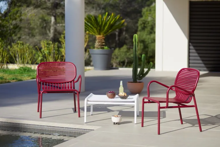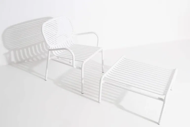 Created by the design duo BrichetZiegler, Petite Friture’s Week-end outdoor furniture combines different geometrical shapes with functional, contemporary design. The aluminum structure makes the pieces lightweight and hardwearing at the same time, and the epoxy-coated matt surface can easily stand any weather. The Week-end range consists of chairs, benches and tables in many colors and sizes, and is thus suitable for large gardens and small balconies alike. Thanks to the sleek design, the pieces can also be used indoors.
