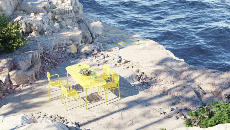 Created by the design duo BrichetZiegler, Petite Friture’s Week-end outdoor furniture combines different geometrical shapes with functional, contemporary design. The aluminum structure makes the pieces lightweight and hardwearing at the same time, and the epoxy-coated matt surface can easily stand any weather. The Week-end range consists of chairs, benches and tables in many colors and sizes, and is thus suitable for large gardens and small balconies alike. Thanks to the sleek design, the pieces can also be used indoors.