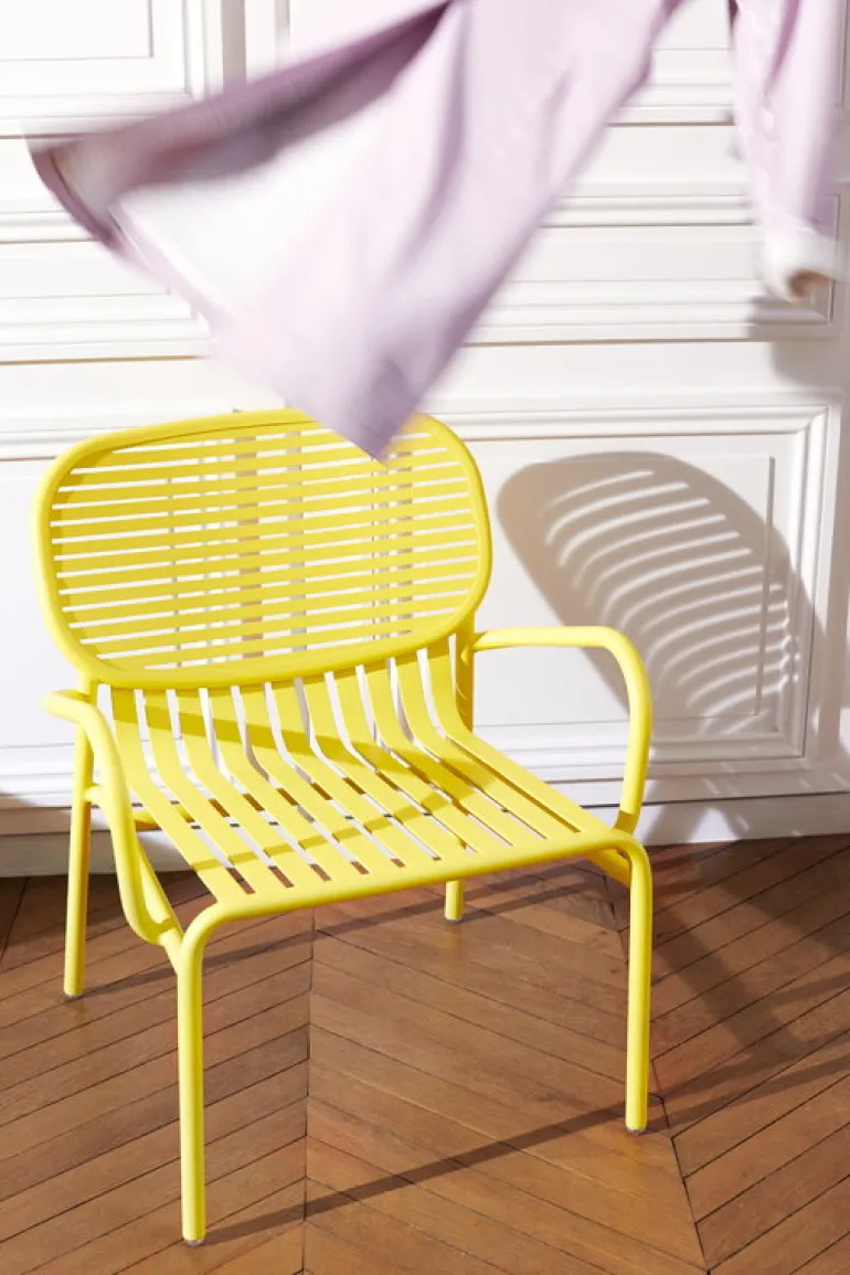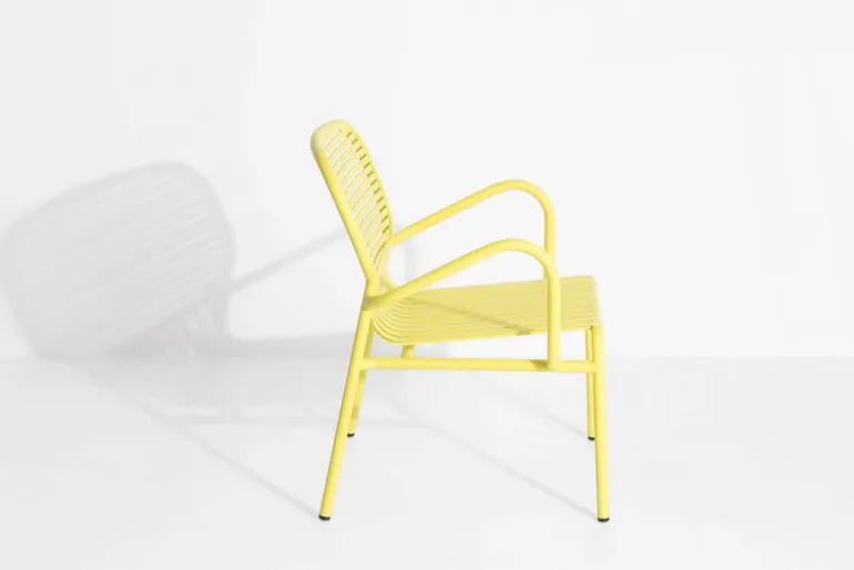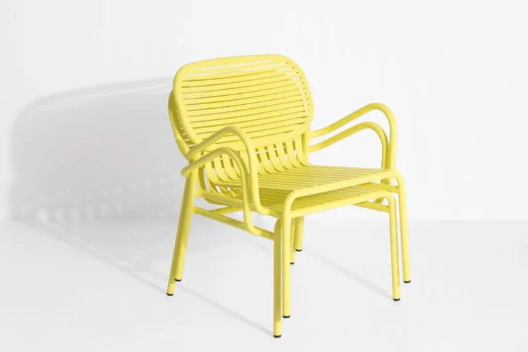 The Week-end lounge chair is part of Petite Friture’s collection of aluminum outdoor furniture. The Week-end lounge chair is characterized by oval shapes and both horizontal and vertical slats on the backrest. All the chairs of the Week-end range are stackable.