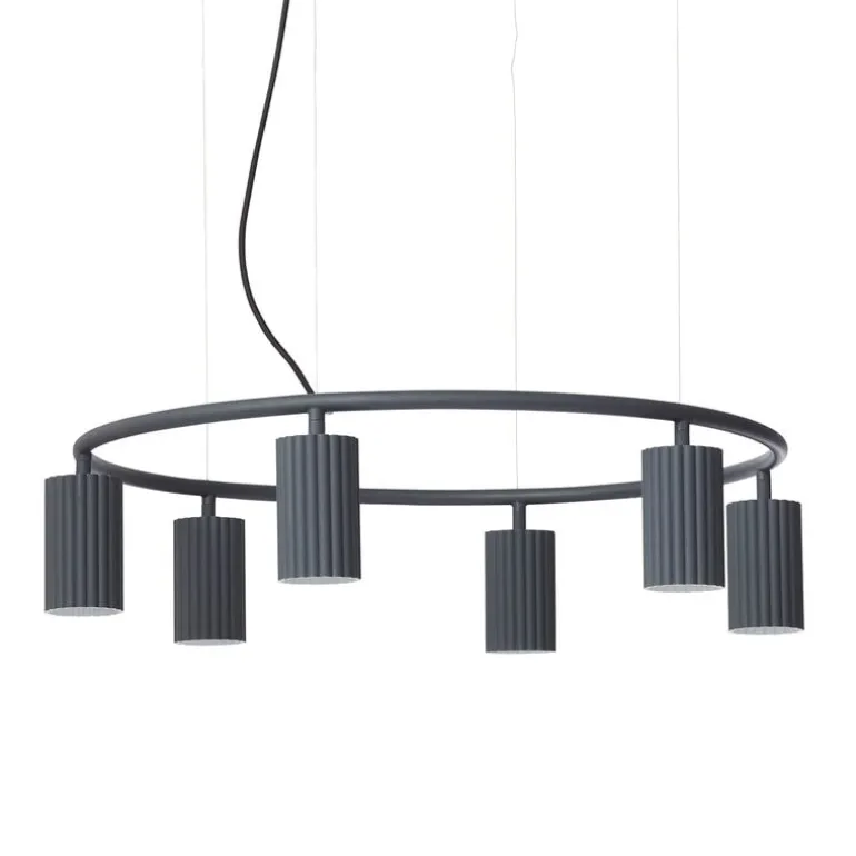 Pholc’s Donna Circle 60 pendant is a versatile and contemporary luminaire defined by a unique, tactile aluminum surface that looks almost ceramic. Inspired by fashion and well-dressed people, designers Stina Sandwall and Nina Jobs set out to make a thin metal shade that would appear soft and inviting – like flowing pleated textiles. Composed of a large metal circle with six lampshades, the Donna Circle 60 pendant makes a statement both in the home as well as public spaces.