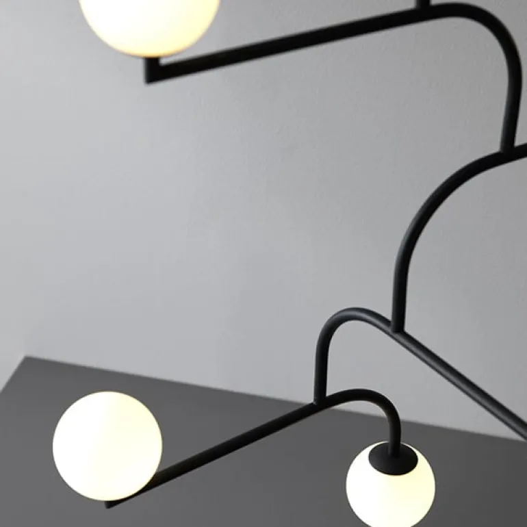 The Mobil collection was born when designer Monika Mulder was asked to design a lamp that would look good in a New York loft. Inspired by the city’s classic balcony racks in black metal and the streetlights of Brooklyn Bridge, she composed the lights of metal tubes and round glass. In 2017, Mobil won the Elle Decoration Design Award in the category of Lamp of the Year.