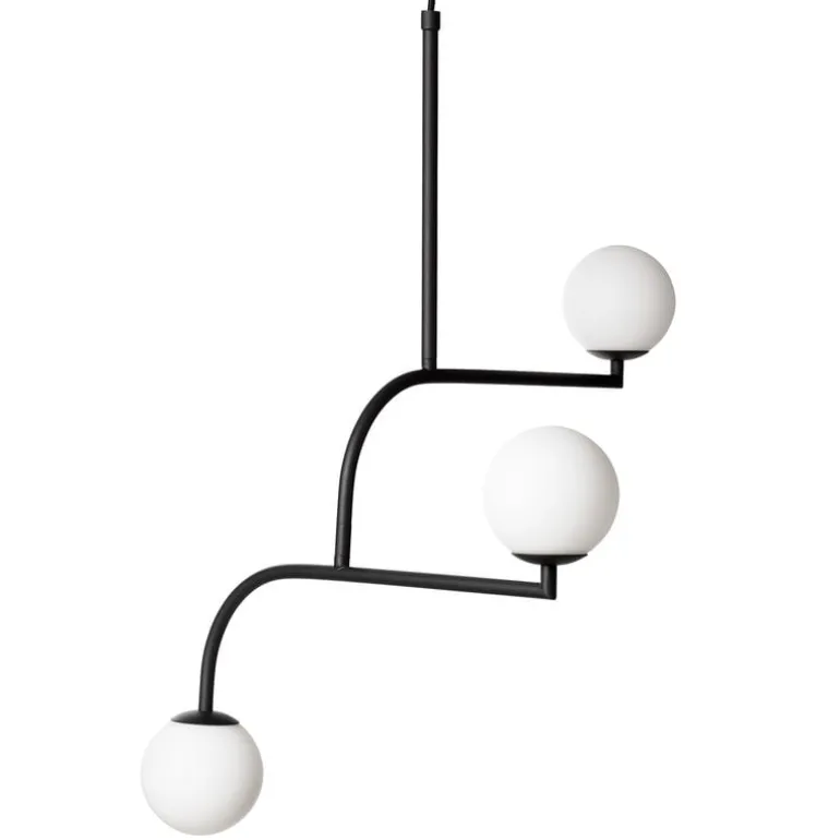 Pholc’s Mobil 70 pendant features three opal glass shades and two identical metal elements that can be turned around to create a desired composition. The elegant pendant is available in three finishes and will catch the eye with its beautiful mobile-like shape in any dining and living room.