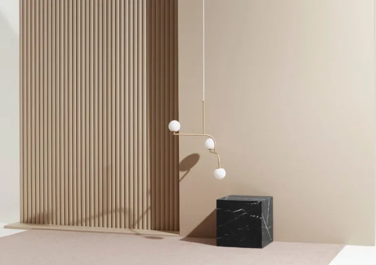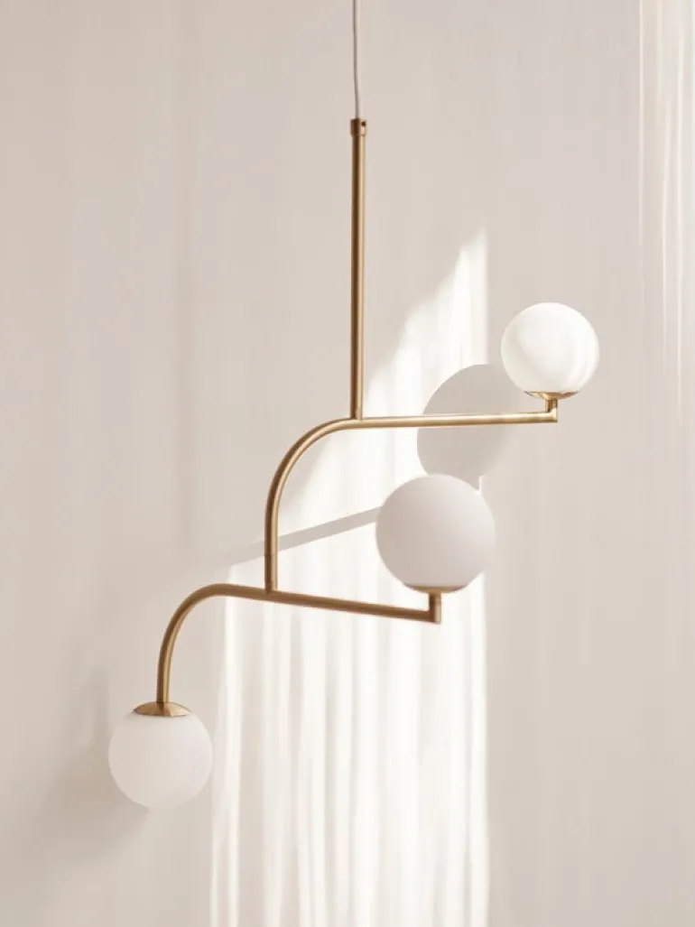Pholc’s Mobil 70 pendant features three opal glass shades and two identical metal elements that can be turned around to create a desired composition. The elegant pendant is available in three finishes and will catch the eye with its beautiful mobile-like shape in any dining and living room.