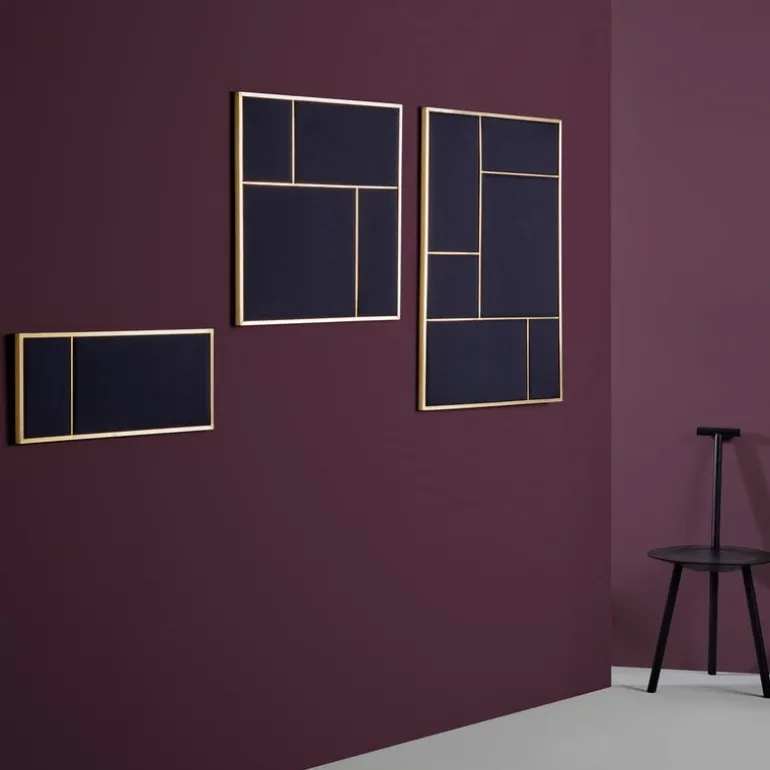 Nouveau Pin message board upgrades an ordinary pin board into a versatile design piece. The brass frame gives this modern pin board a luxurious outline, and the fabric coating offers a beautiful background for notes, photos and small messages. When empty, Noveau Pin functions as a minimalistic décor element, and the different colors and sizes of the collection combine flexibly together. The pin boards have an acoustic sound absorbing effect, and they can be used for creating a soft, pleasant acoustics into any space. Nouveau Pin collection was designed by All The Way To Paris for the Danish design brand PLEASE WAIT to be SEATED.
