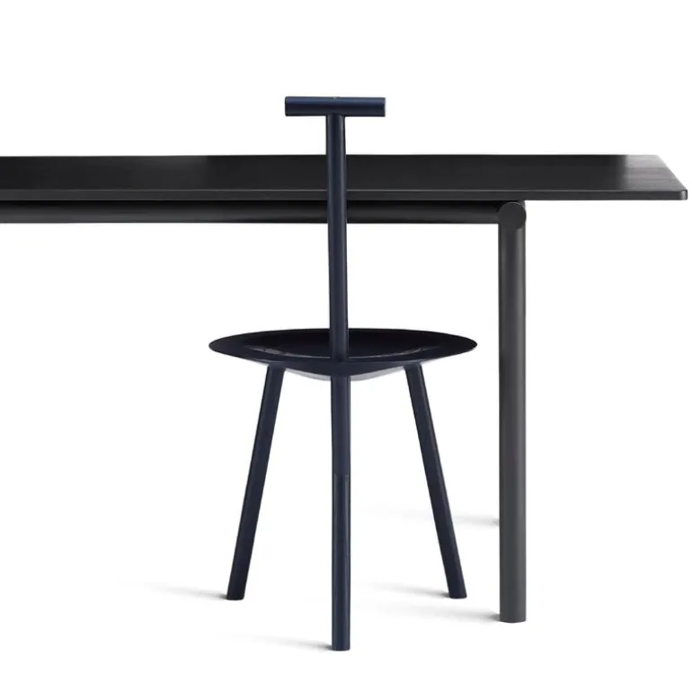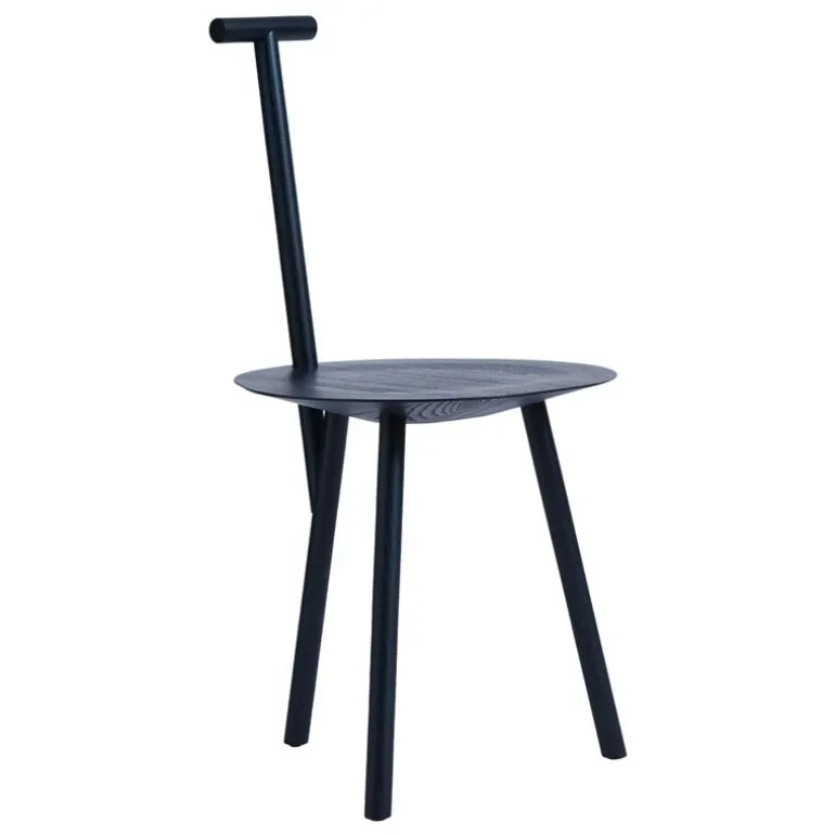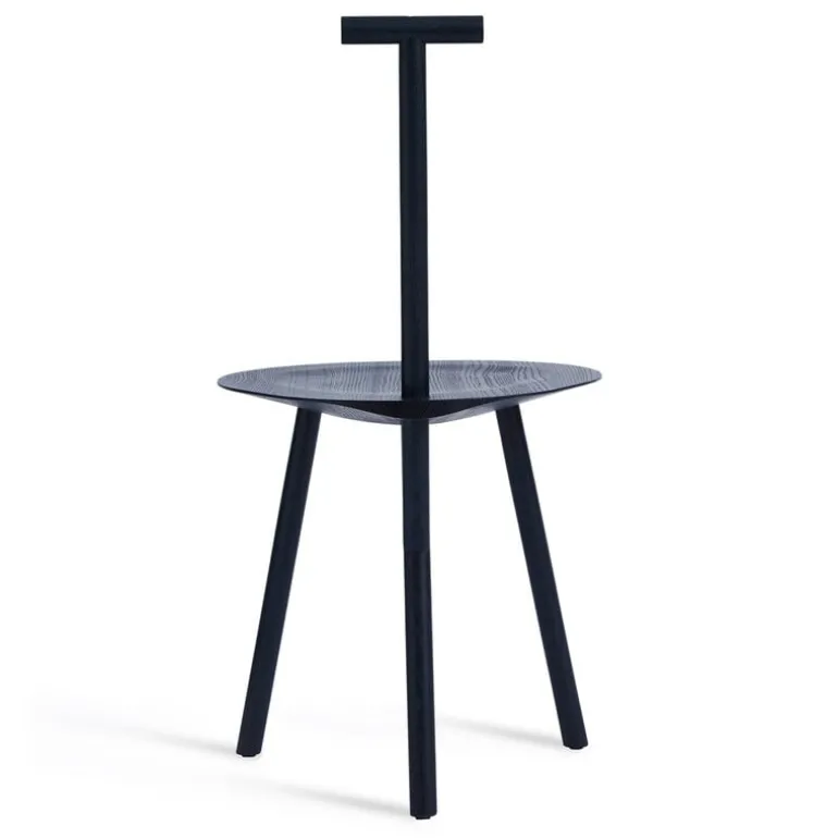 The Spade chair by PLEASE WAIT to be SEATED brings together familiar shapes in an unexpected way. The seat of the chair resembles a three-legged milking stool, while the tiny backrest looks like the handle of a spade – hence the name of the chair. The chair is designed by Faye Toogood, who was inspired by the English countryside where she grew up.