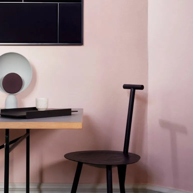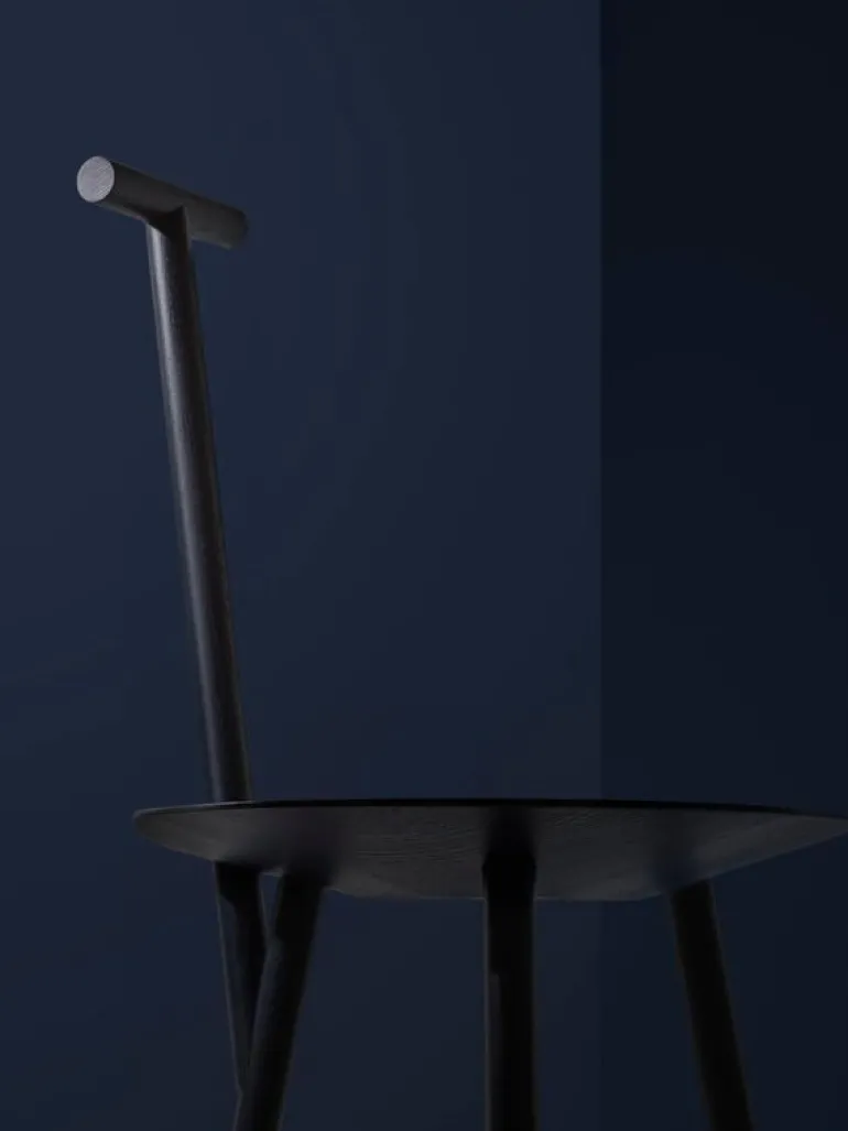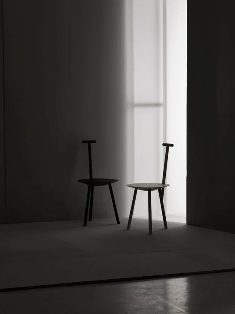 The elegant chair is suitable for a variety of locations. It is delightful in its traditional role at the dining table, but it also works well in unexpected places, such as a minimalist clothes rack in the bedroom. The eye is drawn to the chair’s playful angles and the shadows they cast, making the Spade chair an expressive decorative object also in its own.
