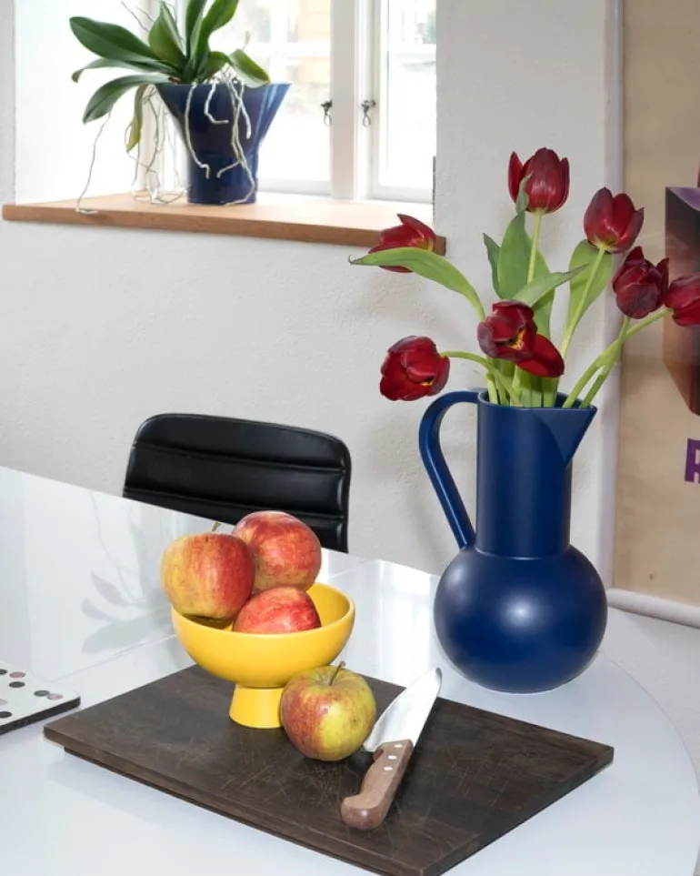 The Strøm pitcher and other items in the series are handmade in Portugal. As a result of handcrafting, slight variations in the vase’s surface can occur, making the final piece fascinating and unique.