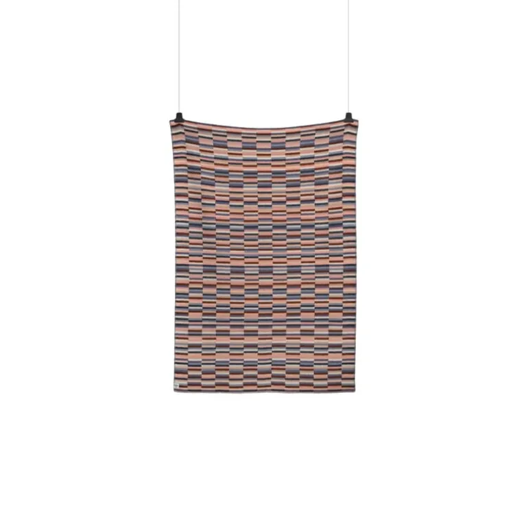Røros Tweed’s Ida throw, designed by Anderssen & Voll, features a colorful, checkered pattern inspired by patchwork and handmade tapestries. The designers, Torbjørn Anderssen and Espen Voll, created the pattern by making a full-scale model with pieces of colored paper – so instead of digital design or drawing, it was designed literally by hand. To honor the design process, traces of the human hand, like small imperfections and irregularities, were preserved in the final product.